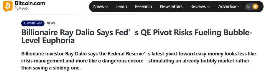 桥水创始人达利欧警告:美联储量化宽松回来了