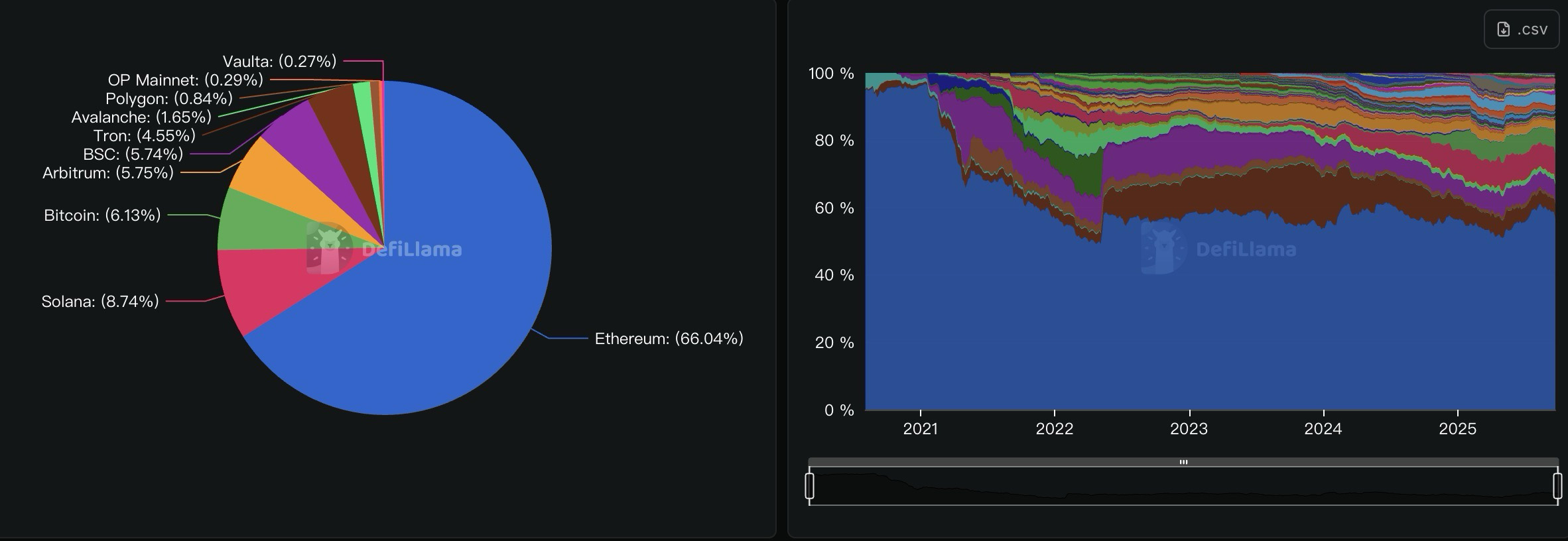 根据DefiLlama统计,迄今整个DeFi 已经有超过1,500 亿美元的总锁仓价值(TVL),而光是以太坊就占了66% 的市占率。