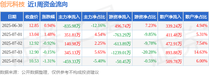 资金流向数据方面,本周创元科技主力资金合计净流出457.39万元,游资资金合计净流出2169.9万元,散户资金合计净流入2627.3万元。本周资金流向一览见下表: