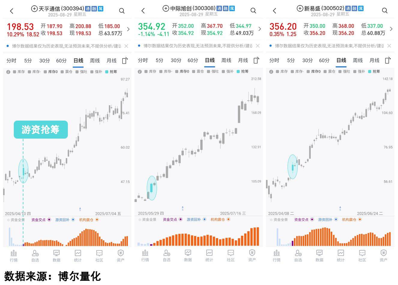 我特别关注那些出现异动但尚未被广泛关注的个股。就像下图的几个案例所示,资金信号往往先于市场认知。