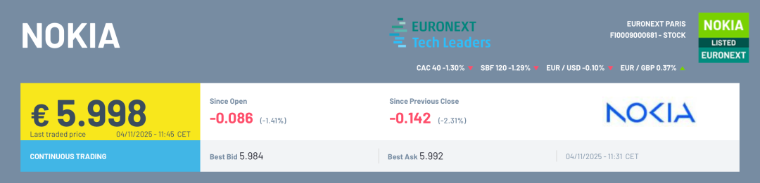 诺基亚表示,公司董事会已决定提交申请,将其股票(ISIN:FI0009000681)从巴黎泛欧证券交易所(Euronext Paris)摘牌。