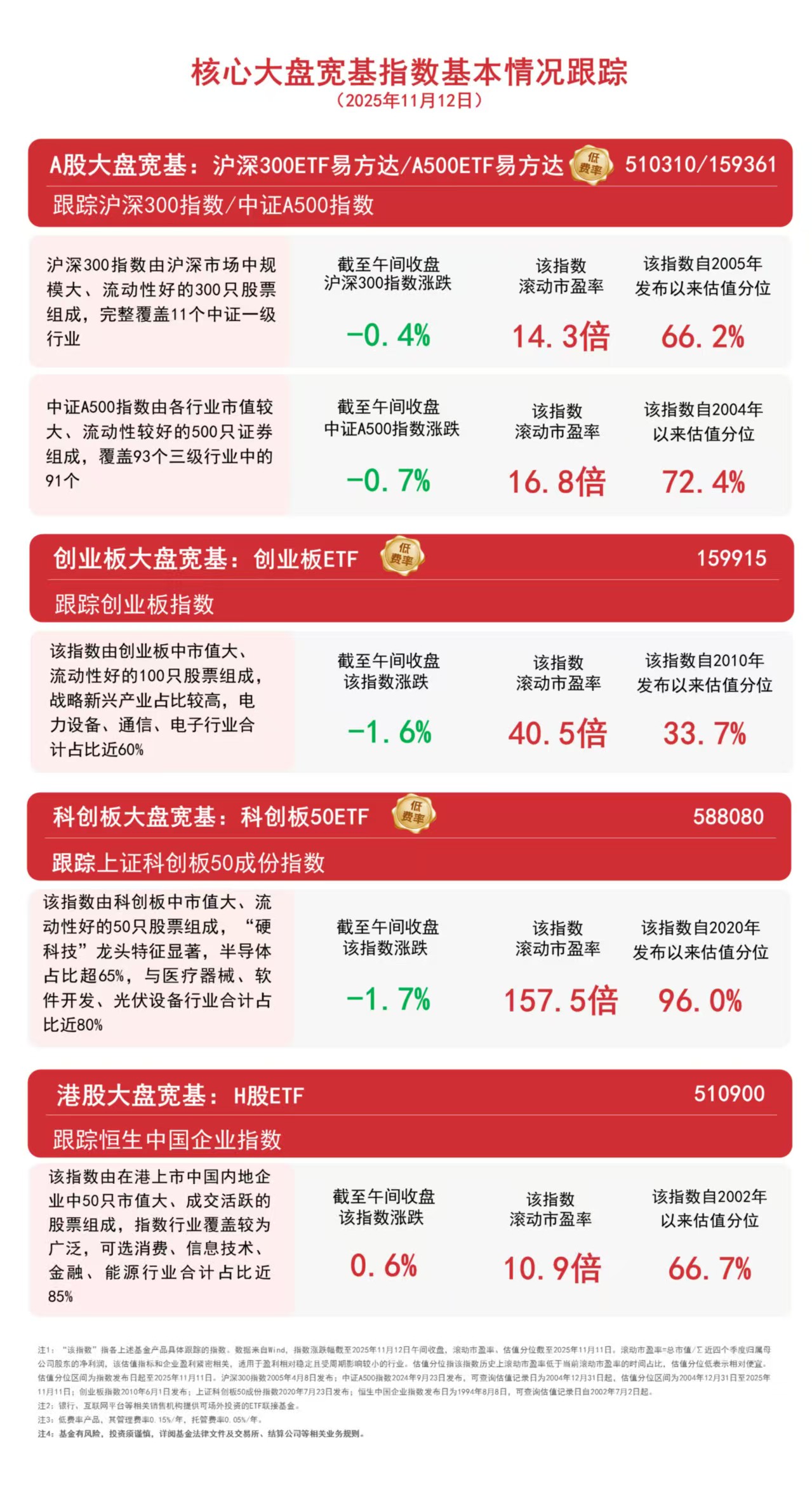 市场早盘震荡调整,A500ETF易方达(159361)、沪深300ETF易方达(510310)等获资金布局